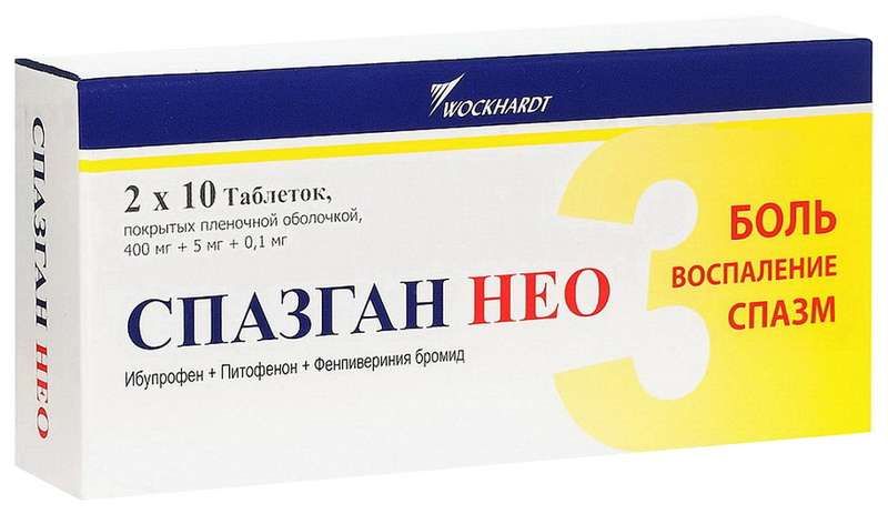 Спазган нео 400мг+5мг+0.1мг 20 шт. таблетки покрытые пленочной оболочкой