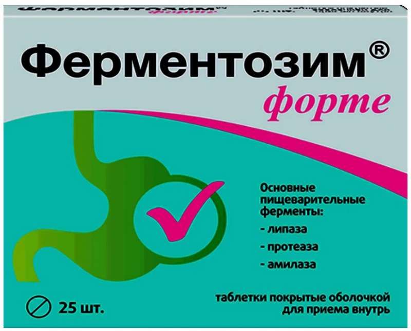 Первоначальная цена составляла ₽115.Текущая цена: ₽85. Ферментозим форте таблетки 25 шт.