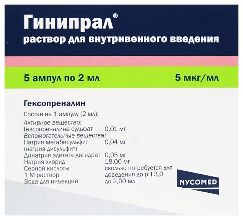 Гинипрал 5 мкг/мл 2мл 5 шт. раствор для внутривенного введения никомед австрия гмбх