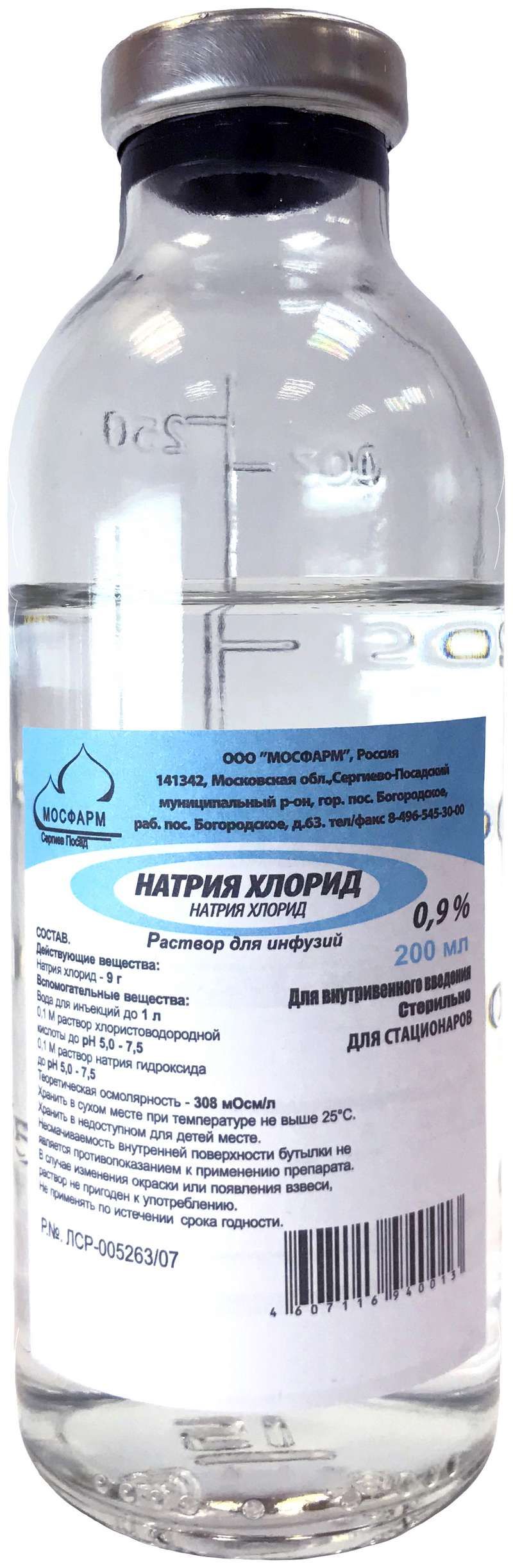 Натрия хлорид 0,9% 200мл раствор для инфузий