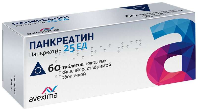 Панкреатин 25ед 60 шт. таблетки покрытые кишечнорастворимой оболочкой