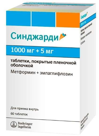 Синджарди 1000мг+5мг 60 шт. таблетки покрытые пленочной оболочкой берингер ингельхайм интернешнл гмбх