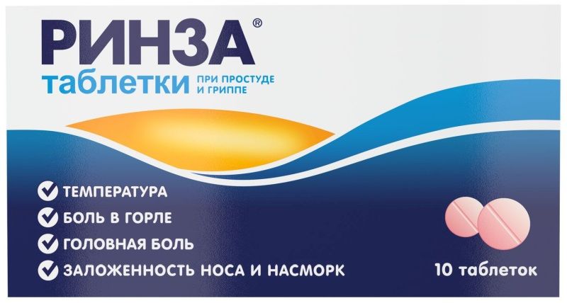 Ринза таблетки от простуды и гриппа с парацетамолом, 10 шт.