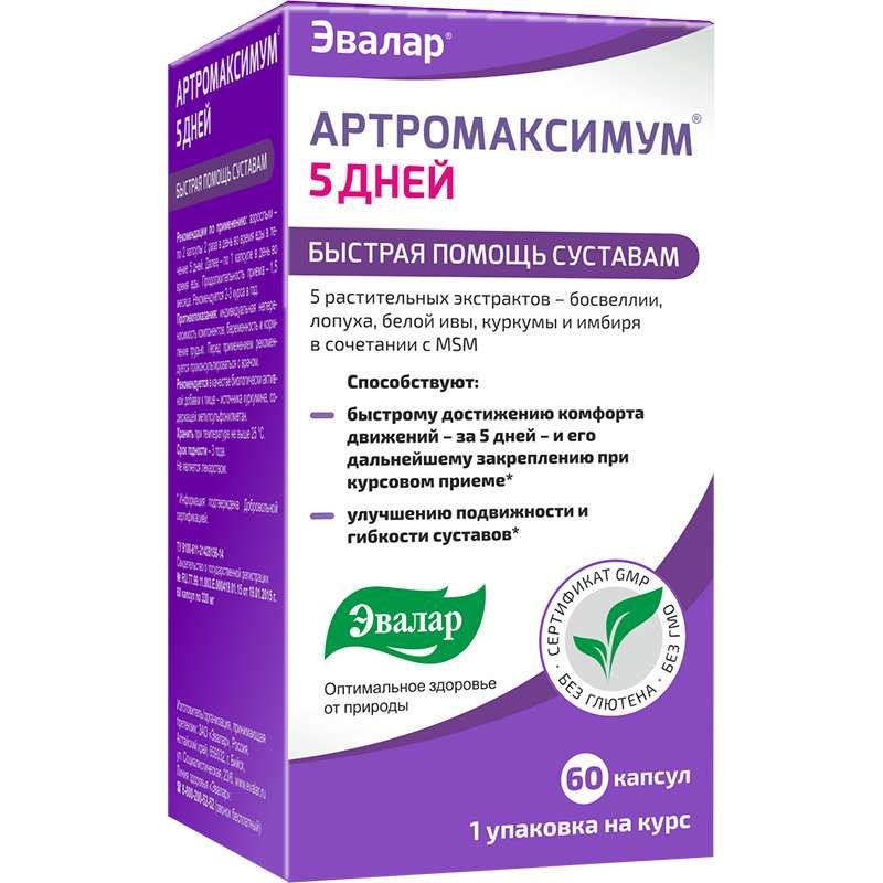 Первоначальная цена составляла ₽761.Текущая цена: ₽564. Артромаксимум 5 дней капсулы 60 шт. упаковка эвалар