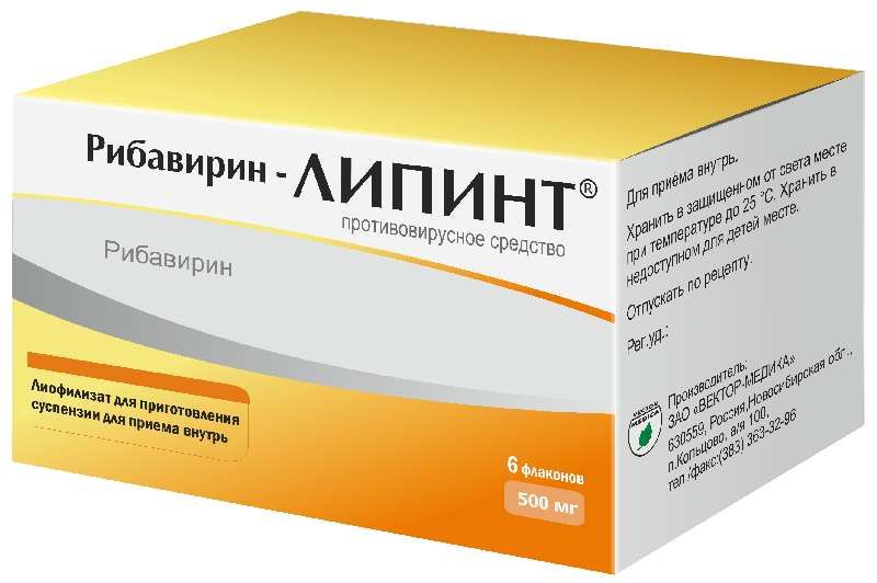 Рибавирин липинт 500мг 6 шт. лиофилизат для приготовления суспензии вектор-медика